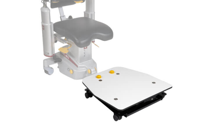 El sillón del cirujano se puede subir y bajar fácilmente de forma eléctrica mediante botones que se accionan con los talones, y la altura de los brazos se ajusta con pulsadores en el reposabrazos. Tiene un modo de estacionamiento estable que se controla mediante un sistema de freno eléctrico que se activa en el lateral del sillón. El bastidor de las ruedas está equipado con una carcasa que facilita la limpieza sin esfuerzo. En definitiva, Carl Mk3 ofrece al cirujano un entorno de trabajo a medida de la más alta calidad.